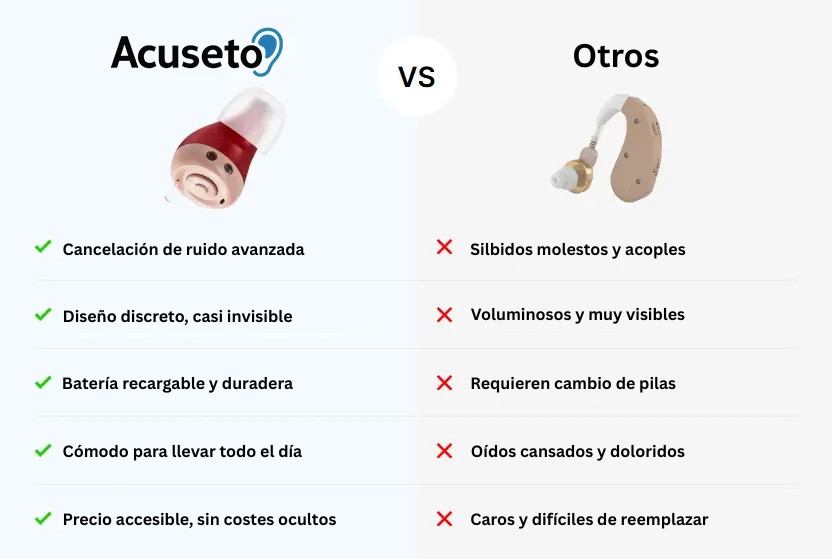 Si vives en esa “niebla auditiva”, donde todo suena apagado como si llevaras tapones, Acuseto te devuelve ese sonido nítido y vibrante que dabas por perdido.