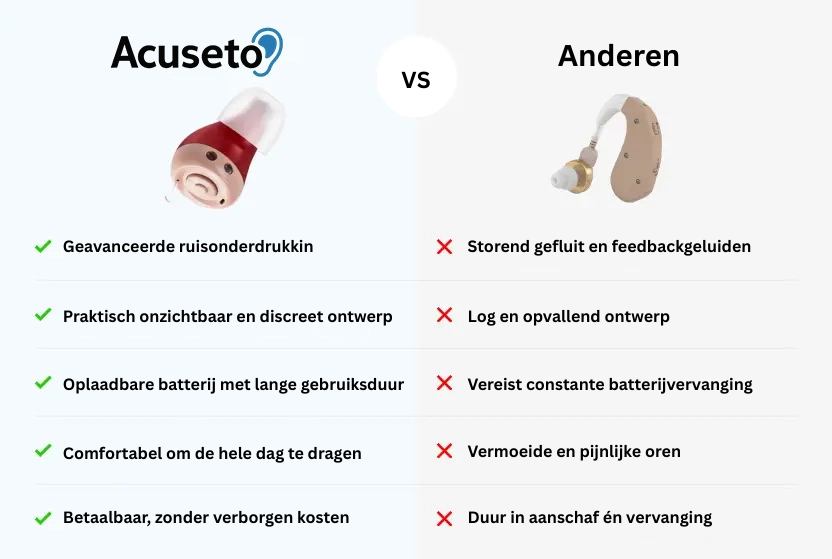 Ben je het zat om steeds ‘Wat?’ te zeggen tijdens gesprekken? Acuseto helpt je weer helder te horen!